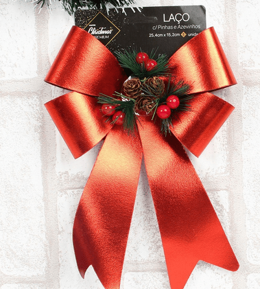 Laço Com Pinhas E Azevinhos 25,4cm Decoração Enfeite Natal Vermelho / ULaço Com Pinhas E Azevinhos 25,4cm Decoração Enfeite Natal Vermelho / U